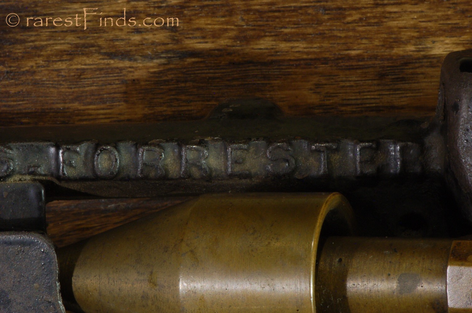 This pencil sharpener offered here is large! From side to side it measures 22¾ inches, the oak board measures 25¼ by 5 by ¾ inches. The Name "S.FORRESTER" and "ALLEGENY PA" is cast into the frame of the machine, see pictures 14-16.