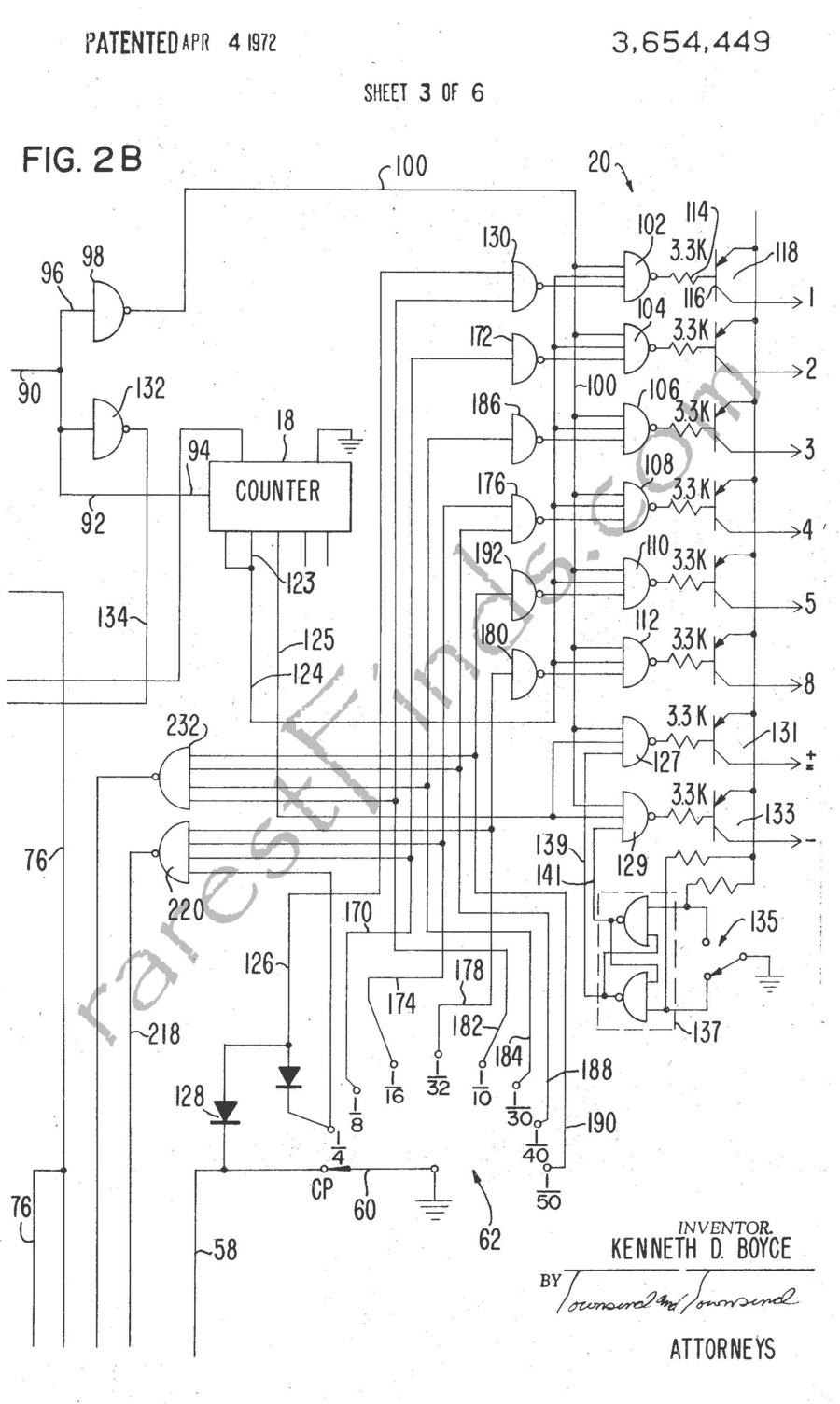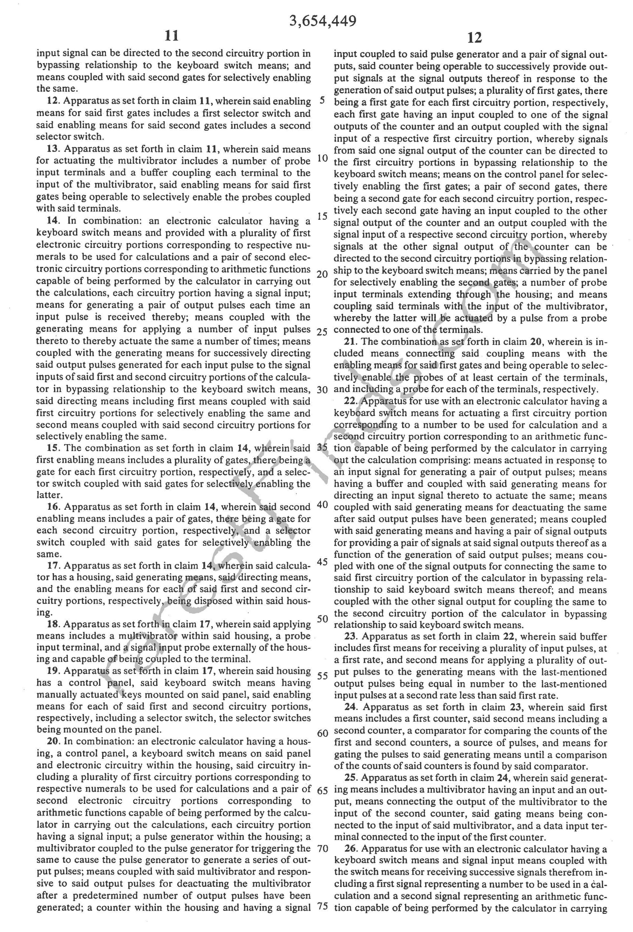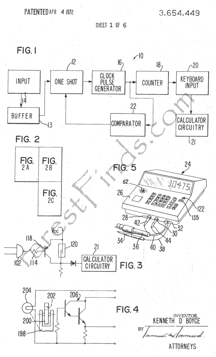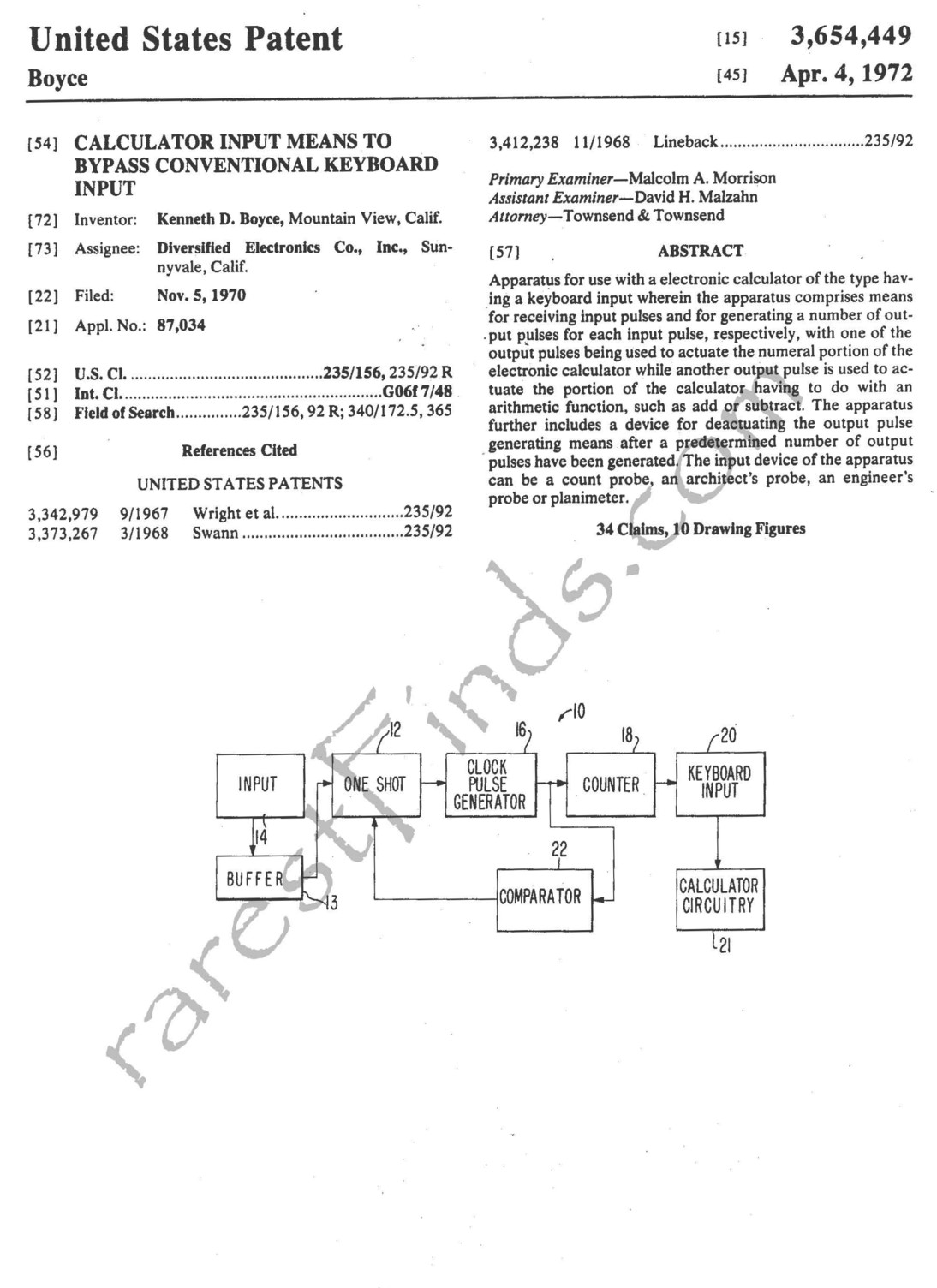 To avoid patent infringements, Diversified Electronics Co. Inc., found a way around the minefield of patent infringements with a new and genius idea. With their InstaMator 510, shown in Fig.5 on page 2 (SHEET 1) of the patent papers above, they offered a desktop calculator which could be programmed externally and the commands/signals feed into the desktop calculator through sockets located on the front of the calculator, see picture 13, thereby circumventing the keyboard.